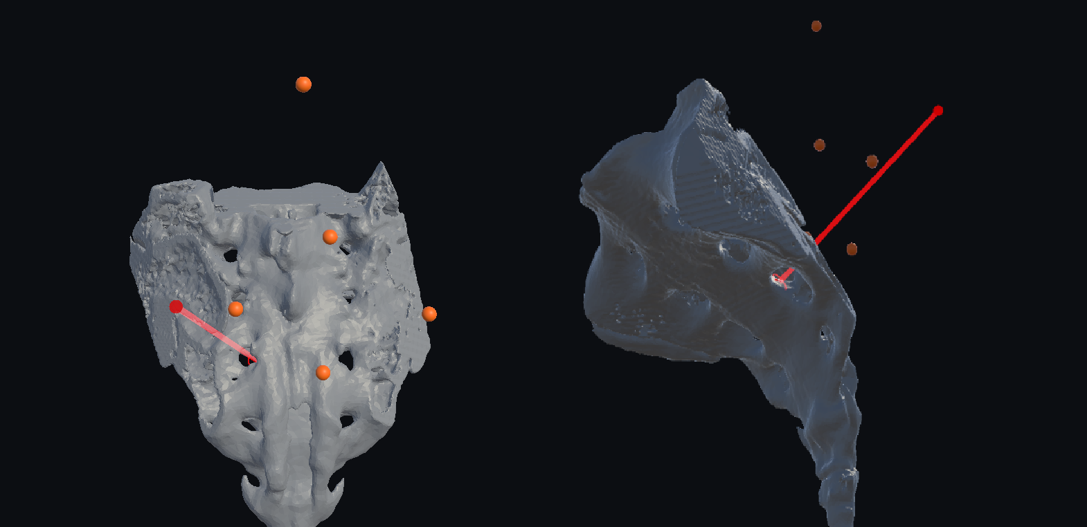 Ключевым преимуществом применения технологий дополненной реальности при нейромодуляционных вмешательствах является возможность получать трёхмерное представление об индивидуальных анатомических структурах пациента непосредственно в ходе операции. В отличие от флюороскопии, которая формирует двумерное, суммационное изображение, AR-навигация позволяет хирургу точно оценивать пространственные характеристики целевых областей — включая направление, глубину и истинные размеры крестцовых отверстий либо входа в крылонёбную ямку. Такая объёмная визуализация обеспечивает более глубокое понимание анатомии в реальном времени и значительно повышает точность планирования и исполнения хирургического доступа.
