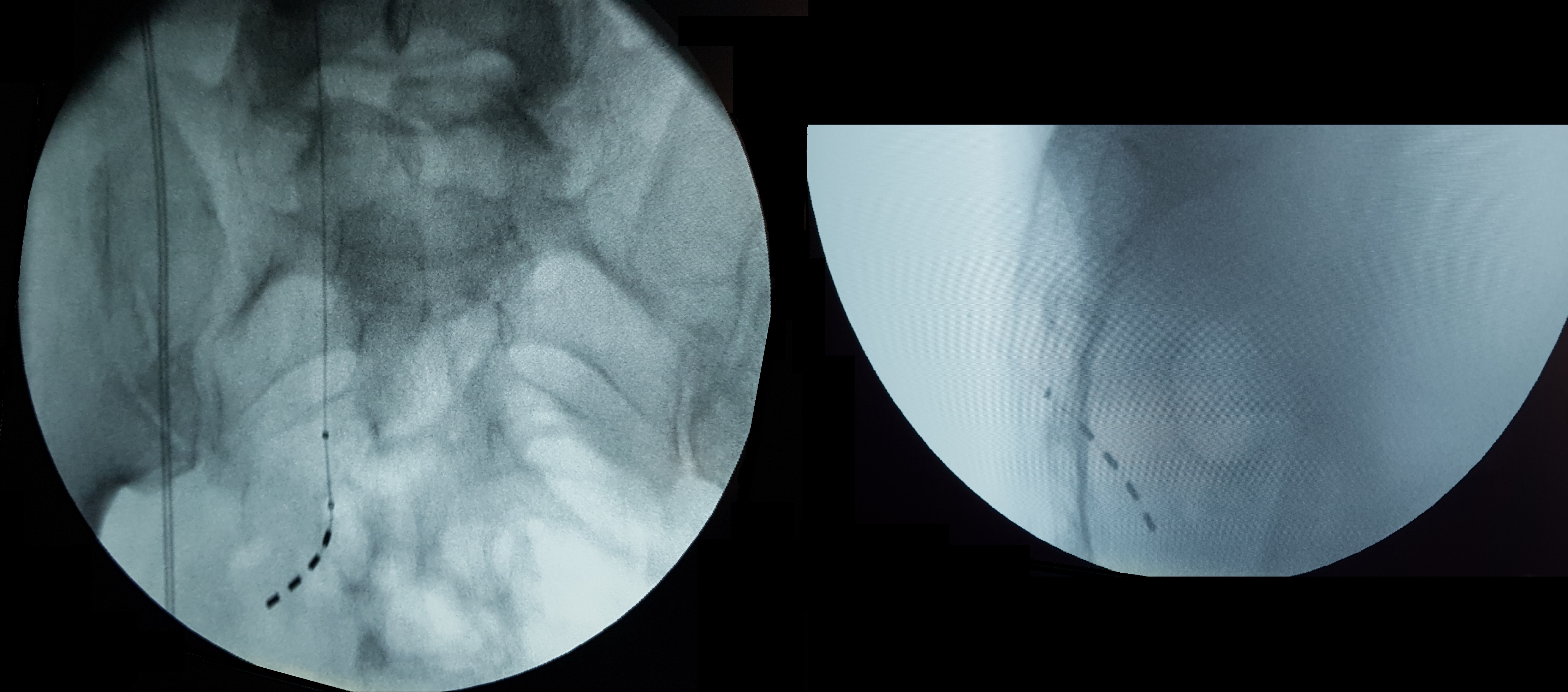 Рисунок 5. Рентгенологический контроль расположения электрода в S3 отверстии справа.