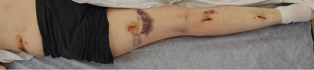 Рисунок 4. Фото послеоперационных ран на 3 сутки после операции. Отмечается несколько гематом в ложе кармана петель, но клинически значимого эффекта они не имели и самостоятельно прошли через несколько недель.